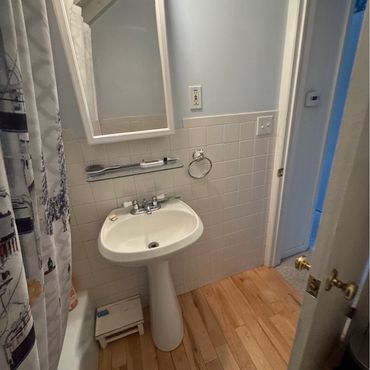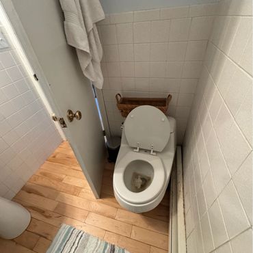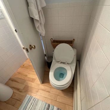 A great renovation lives in the details. To complete the overhaul, we integrated premium fixtures and thoughtful storage solutions: A brand-new vanity and high-efficiency toilet provide a fresh, clean start. We installed a recessed medicine cabinet, offering plenty of hidden space for toiletries without cluttering the visual landscape. The space is tied together with a shower system and a charming porcelain doorknob - a small, vintage-inspired detail that adds a touch of soul to the modern build.