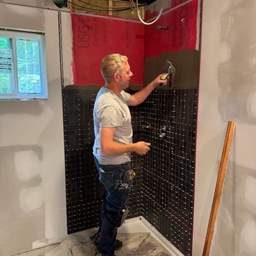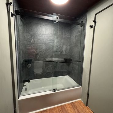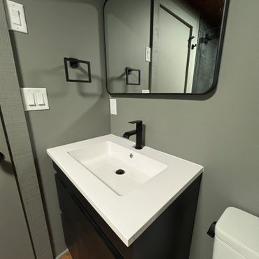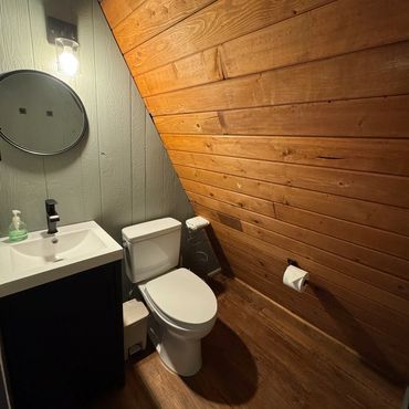 When our clients approached us for this home renovation, their vision was crystal clear: a modern mountain vibe that would beautifully blend rustic charm with a sleek, contemporary design. We dove in headfirst, embarking on a complete transformation that truly brought their dream to life. We started with the core of the home, completely gutting both main bathrooms and giving the loft powder room a much-needed facelift. To create a cohesive flow, we installed new luxury vinyl flooring throughout the entire house, carefully selecting a shade that perfectly matched the existing sloped ceiling boards. This immediately set a warm and inviting tone.